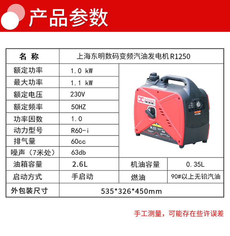 * 表示必填采購:手提式1000W便攜小型房車數碼變頻(pín)1KW汽油發(fā)電(diàn)機R1250