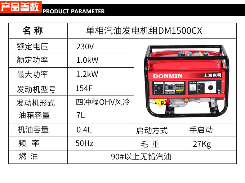 * 表示必填采購(gòu):單相1kW小型汽油發電機組DM1500CX