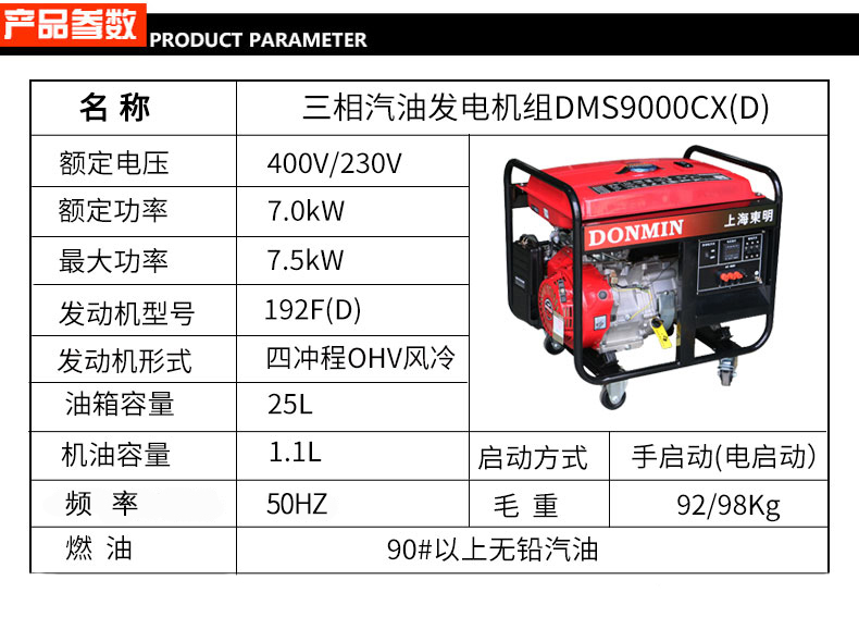 建築施工三相7.5KW 汽油小型(xíng)發電(diàn)機組DMS9000CX DMS9000CXD