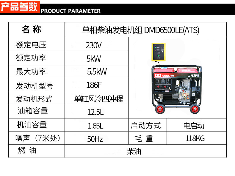 * 表示必填采購:冷鏈配套單(dān)相5kw無人值守ATS柴油發電機 DMD6500LE(ATS)