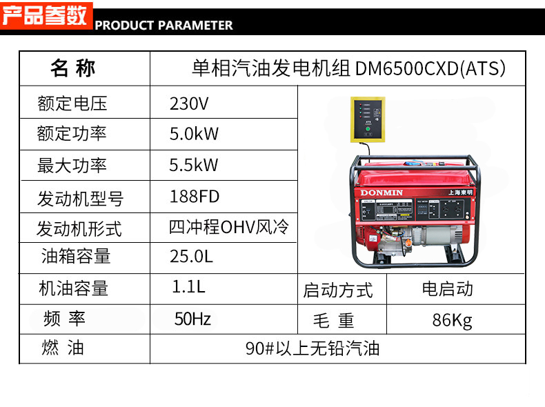 * 表示必填采購:冷鏈配(pèi)套單相5kw無人值守ATS汽油發電機組 DM6500CXD(ATS)