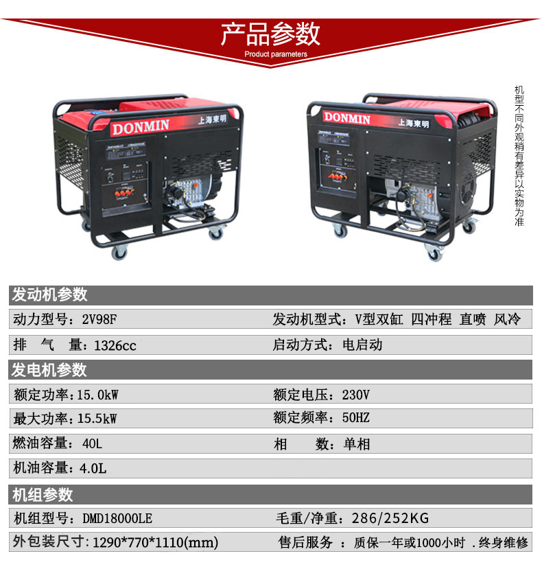 - 上海大香蕉污视频單相12KW 12000W柴油發電機組DMD15000LE ◆采用雙缸V型結構,動(dòng)力(lì)強勁; ◆大型消音器,動平(píng)衡轉(zhuǎn)軸,低(dī)噪音機組設計,采用具有減震功能的外殼與框(kuàng)架; ◆大容量油箱確保長時間的連續工作; ◆無熔絲斷路器提供過載保護,電容電壓調節(jiē)器(qì),確保穩定電壓輸出; ◆定向(xiàng)輪加萬向輪結構,移動(dòng)方便。