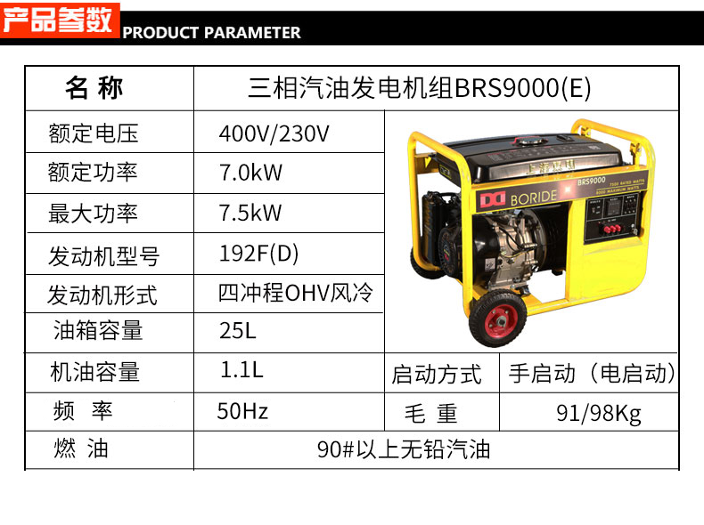 * 表示必填采購:三相7kW小型汽油發電機組(zǔ) BRS9000(E)
